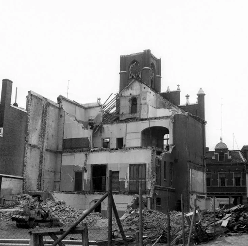 Er kwam een ander plan, van Van den Broek & Bakema, een architectenbureau uit Rotterdam dat in Eindhoven onder meer tekende voor Winkelcentrum Woensel en de wijk ’t Hool. Een belangrijk element uit hun cityplan was de bouw van een ‘ruggengraatgebouw’: een langgerekt gebouw van beton. Daarvoor zouden het Stratumseind en de Ten Hagestraat moeten worden gesloopt, maar het stadhuis in de Rechtestraat kon blijven. Ook dat plan ging niet door, maar wat nu? Er was sprake van een impasse. Uiteindelijk is de gemeente toen zelf illegaal begonnen het stadhuis aan de achterkant te slopen. Raadsleden kregen daar lucht van en kaartten het aan maar uiteindelijk was de sloop al zo ver dat het gebouw niet meer te redden was.”