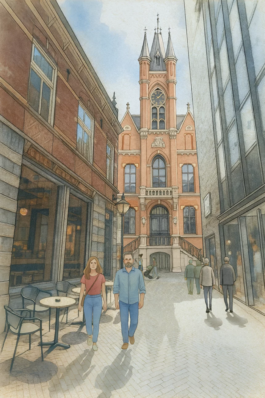 Op zomerse dagen, als de ramen van balletstudio Valentijn in de Rechtestraat openstonden, hoorde Sander Perquin het geluid van de piano die de balletlessen van zijn zusje begeleidde. Was de les afgelopen, dan liep hij samen met zijn moeder en zusje naar huis. „Als ik buiten op mijn zusje stond te wachten, keek ik vaak naar de plaquette van het oude stadhuis die daar in de stoep ligt. Wie sloopt er nou zo’n mooi gebouw, dacht ik dan.”